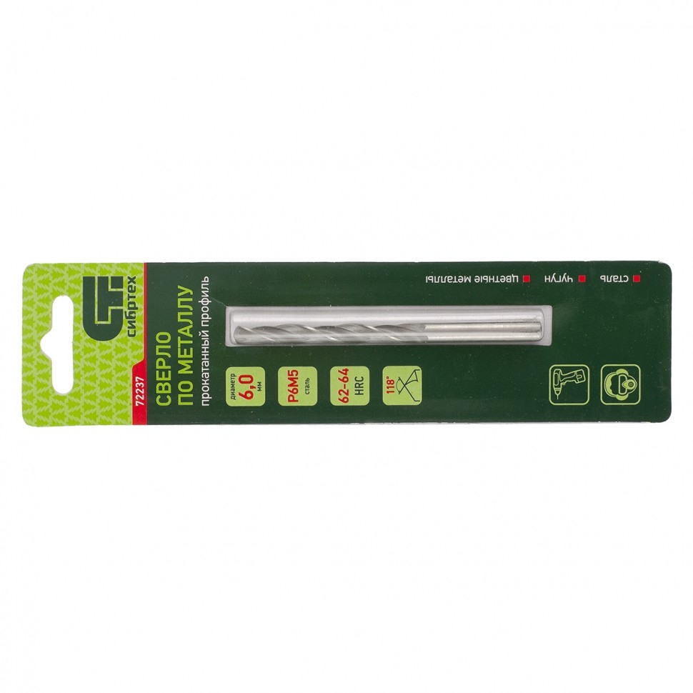 Сверло по металлу 6,0 мм Р6М5 Сибртех 72237 1 шт.