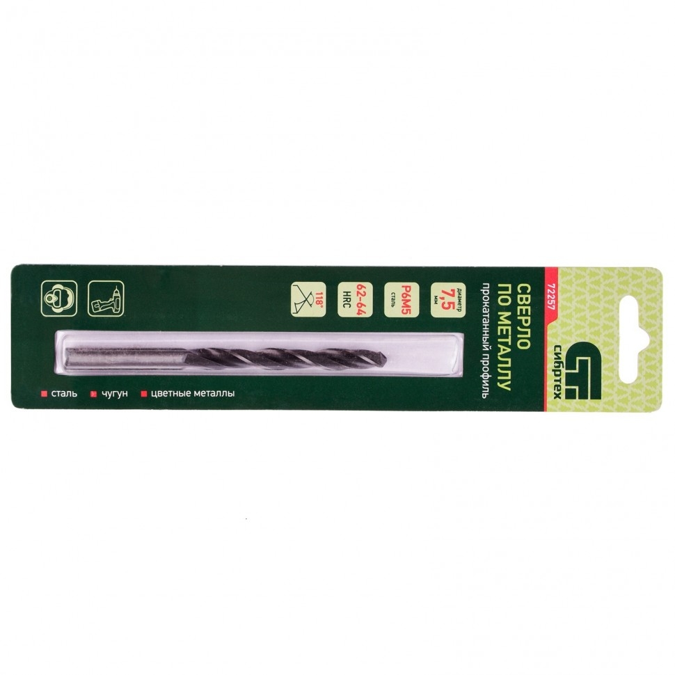 Сверло по металлу 7,5 мм Р6М5 Сибртех 72257 1 шт.