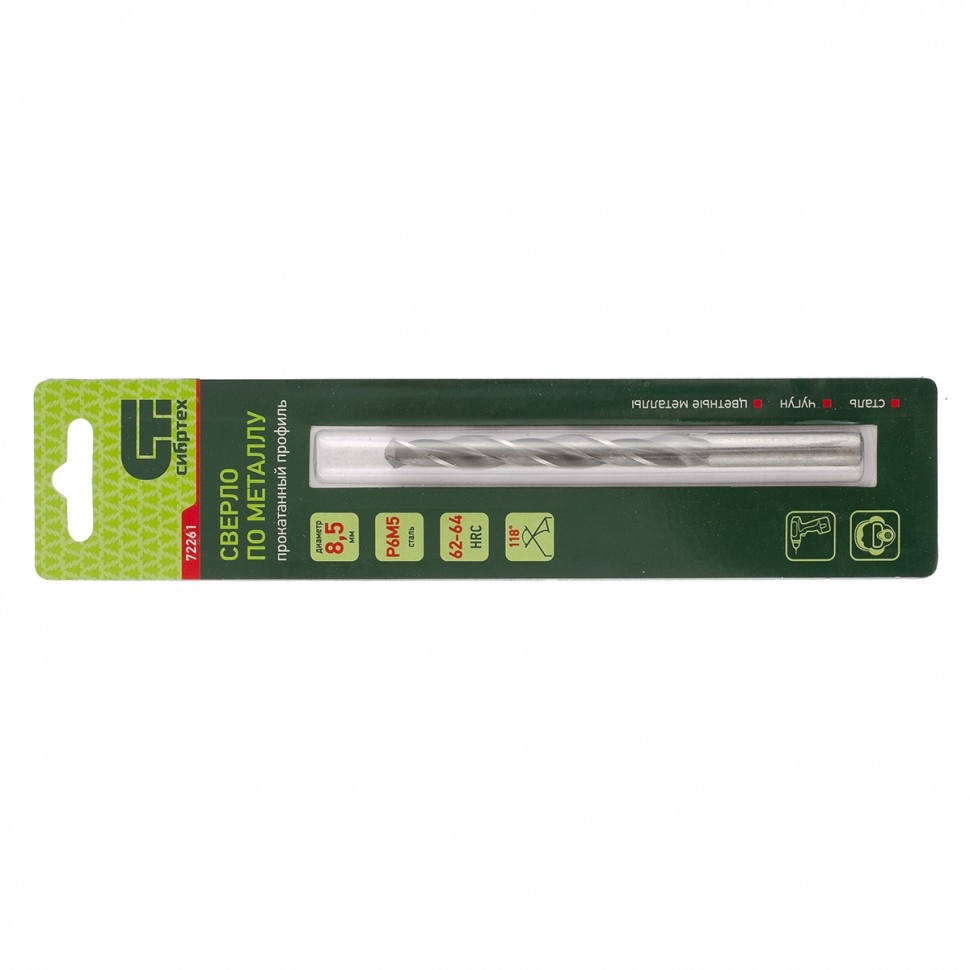 Сверло по металлу 8,5 мм Р6М5 Сибртех 72261 1 шт.