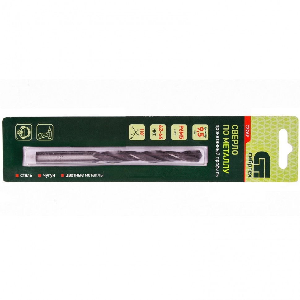 Сверло по металлу 9,5 мм Р6М5 Сибртех 72269 1 шт.