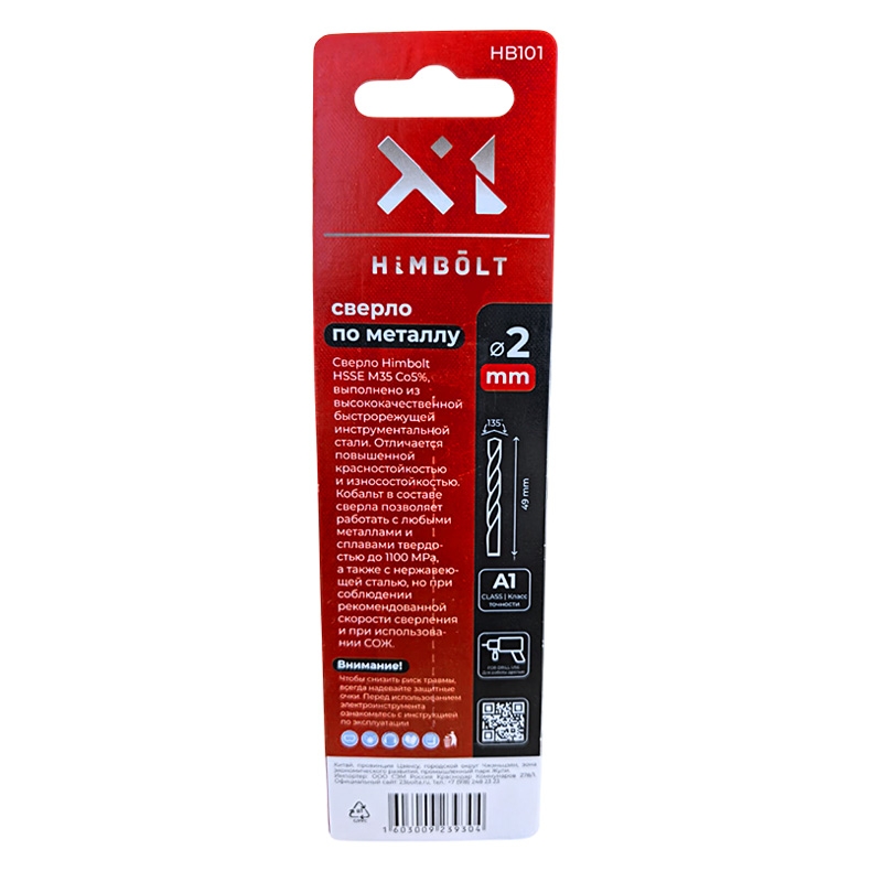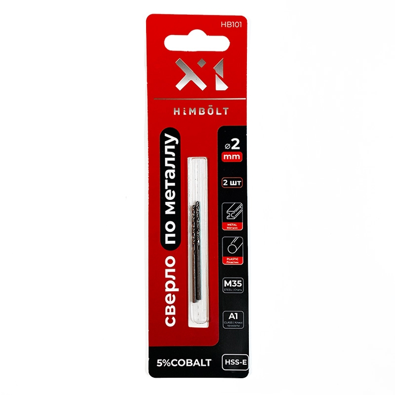 Сверло по металлу с кобальтом 5% P6M5K5 2,0 мм HIMBOLT 2 шт. блистер выполнено из высококачественной быстрорежущей инструментальной стали. Отличается повышенной красностойкостью и износостокойстью. Кобальт в составе сверла позволяет работать с любыми металлами и сплавами твердостью до 1100 МРА, а также с нержавеющей сталью, но при соблюдении рекомендованной скорости сверления и при использовании СОЖ.