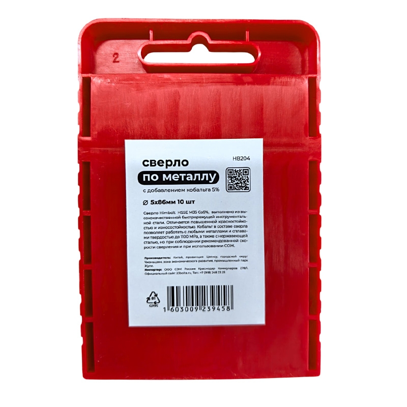 Сверло по металлу с кобальтом 5% P6M5K5 5,0 мм HIMBOLT 10 шт.пластиковый бокс