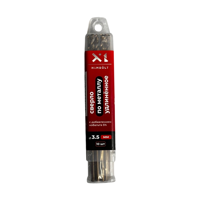 Сверло по металлу с кобальтом 5% P6M5K5 удлиненное 3,5 мм HIMBOLT 10 шт.пластиковый бокс