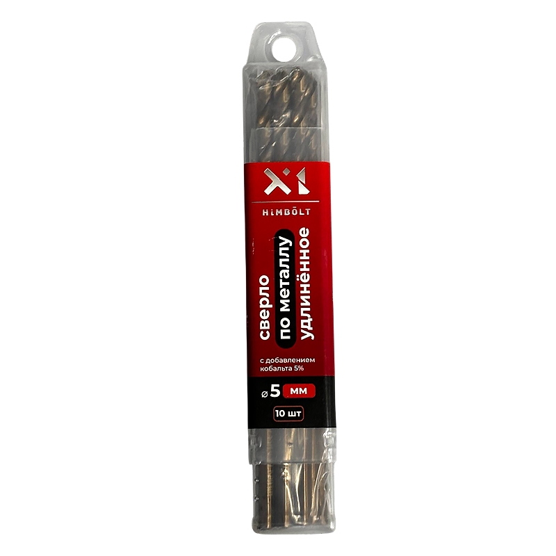 Сверло по металлу с кобальтом 5% P6M5K5 удлиненное 5,0 мм HIMBOLT 10 шт.пластиковый бокс