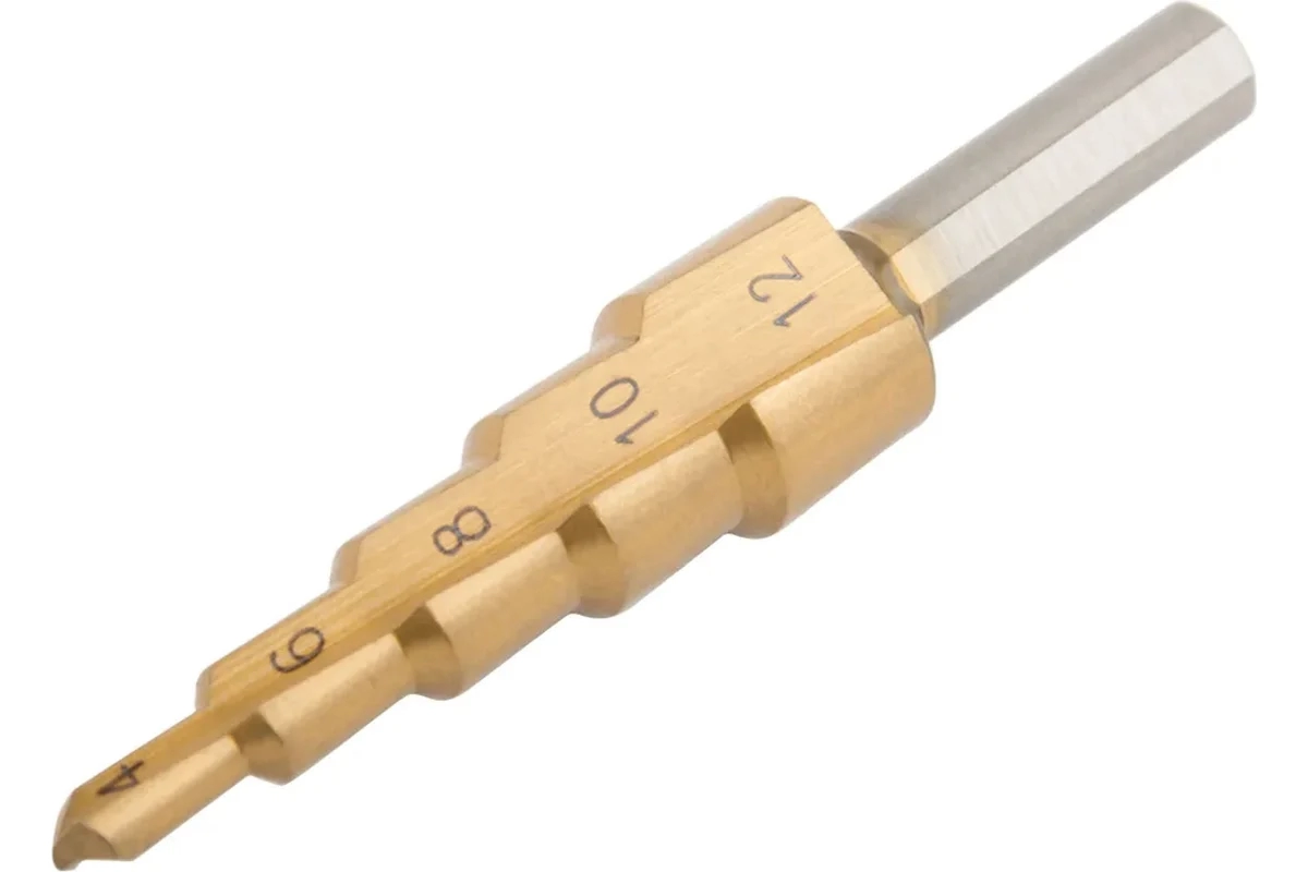 Сверло ступенчатое по металлу, HSS, 5 ступеней, 4-12 мм MOS