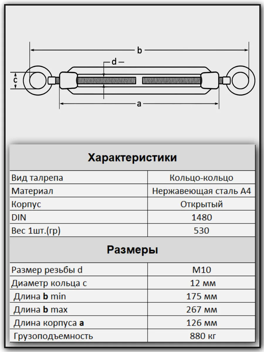 Талреп кольцо-кольцо нержавеющий А4 М10 DIN1480, 1 шт.
