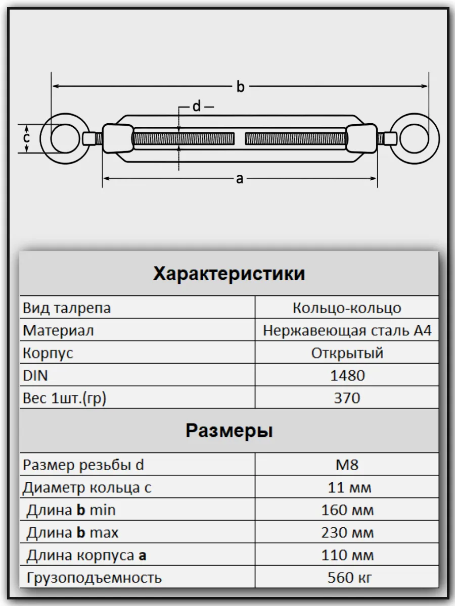 | Талреп кольцо-кольцо нержавеющий А4 М8 DIN1480, 2 шт. | A4BJ50800091A07ф2 | 1 шт. |