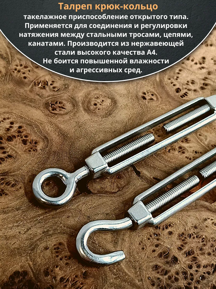 Талреп крюк-кольцо нержавеющий А4 М8 DIN1480, 6 шт.