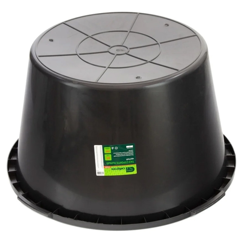 Брал для замеса небольшого количества цементного раствора и штукатурки. Вместимость заявлена честно - 85 литров реальные. Материал плотный, не хлипкий, ручки удобные