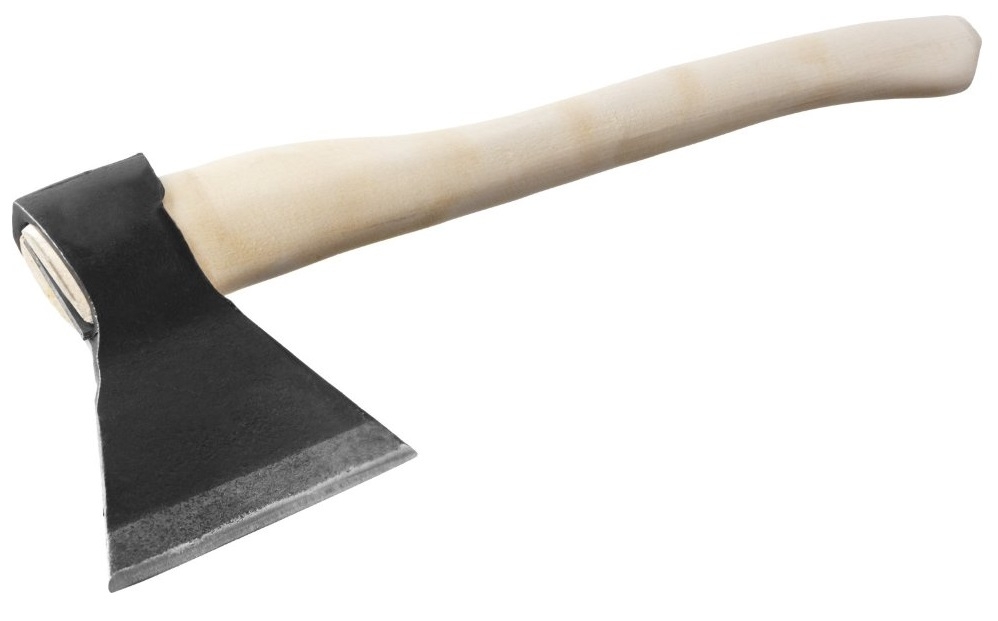 Кованый топор Б 21670 с рабочей частью весом 680 г и деревянным топорищем 400 мм, вес в сборе 900 г, рассчитан на бытовое использование. Инструмент с небольшим прямым лезвием позволяет выполнять рубку и тесание древесины любых пород. Высокое качество — полотно выполнено из стали 60Г и закалено до необходимое твердости. Стальной клин в месте всада — полотно не сползает в процессе эксплуатации. Заводская заточка — инструмент можно использовать сразу после покупки. Защита от рассыхания — деревянное топорище пропитано олифой. Удобство транспортировки — топор весит всего 900 г, а длина рукоятки составляет 400 мм.