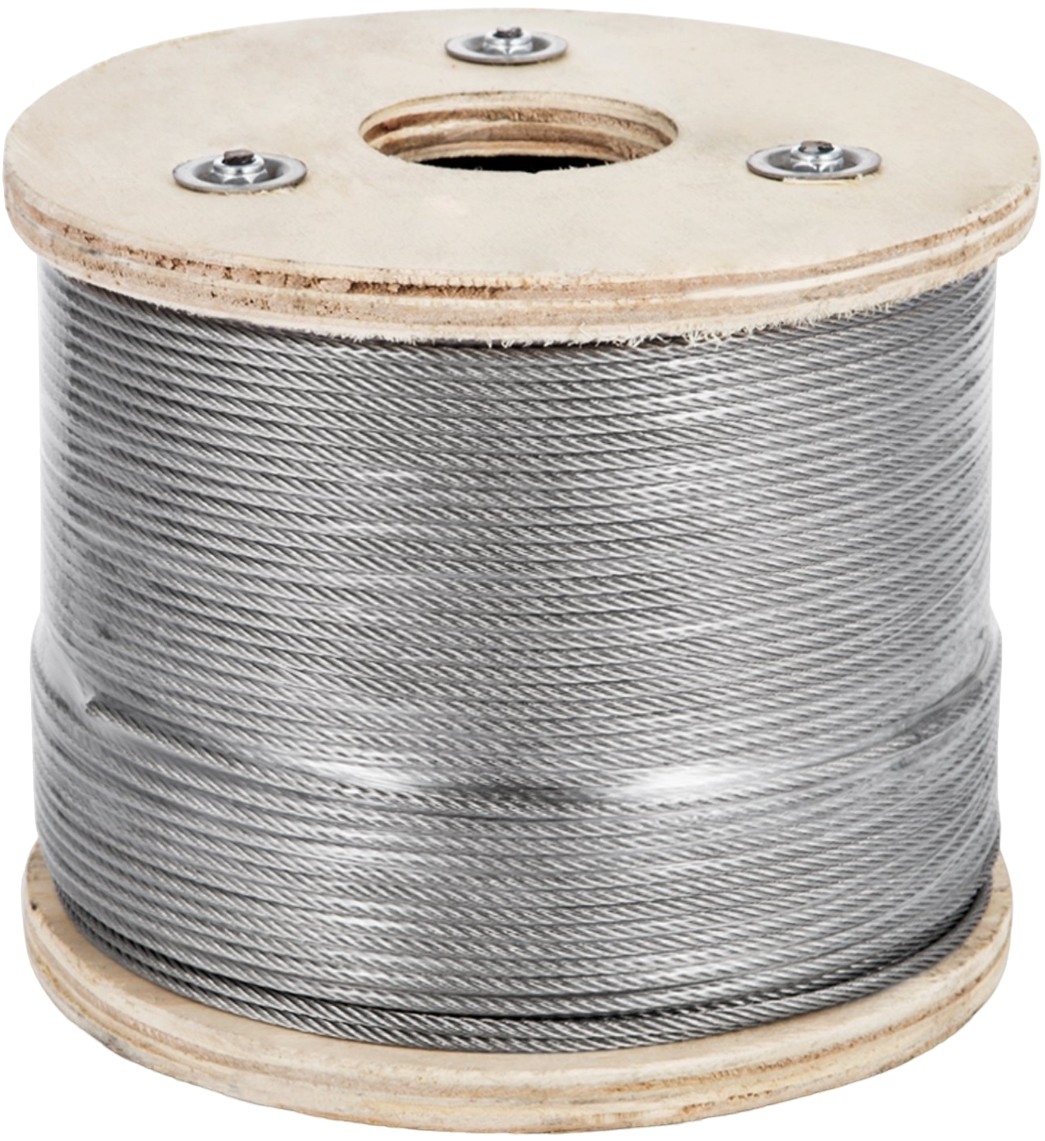 Трос из нержавейки А2 средней жесткости диаметром 3 мм сечением 7х7 DIN 3055 обладает высокой прочностью и состоит из семи каболок по семь жил каждая. Трос применяется для изготовления такелажных приспособлений негрузоподъемного назначения. Обладает долгим сроком службы во влажной среде и при эксплуатации под открытым небом, сохраняет работоспособность при предельно низких температурах (-200° С) и высоких (+450° C) температурах. Поставляется в деревянной бухте, длина троса 1000 м.