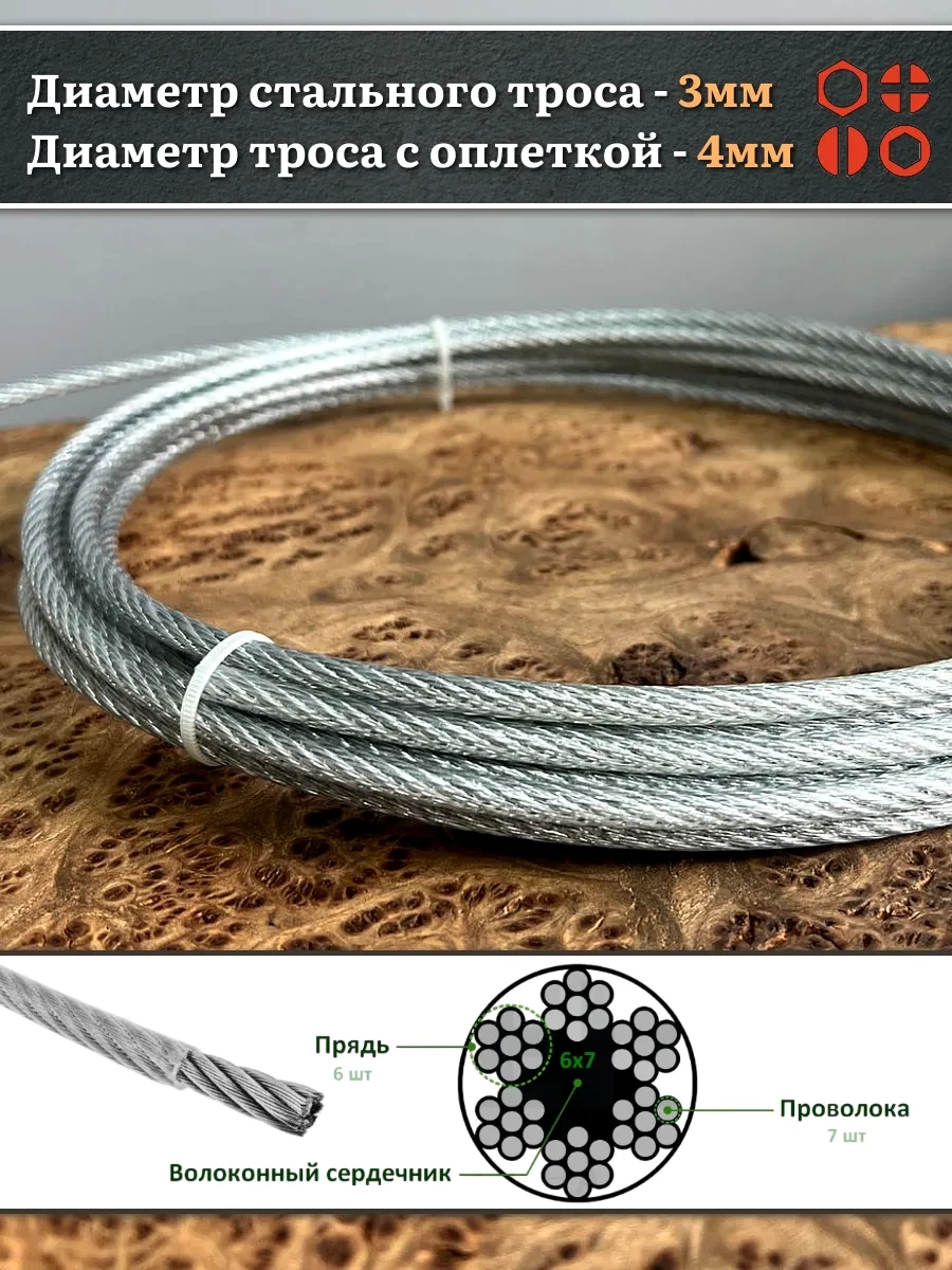 Трос стальной 3/4 ОЦ в оплетке, 50 м.