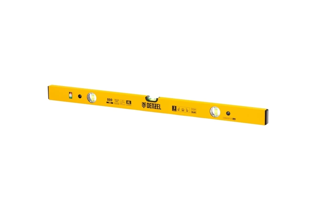 Уровень алюминиевый фрезерованный 3 глазка 800 мм Denzel