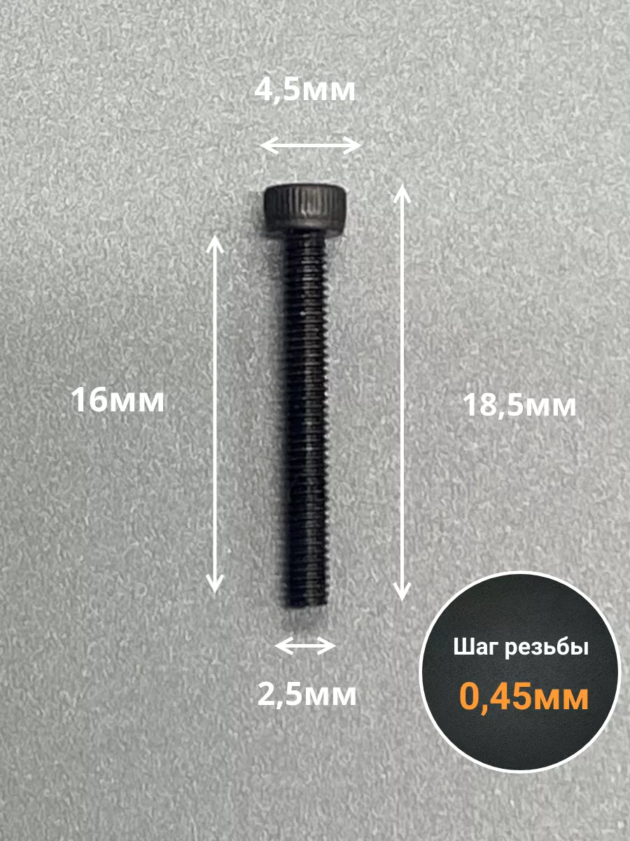 Винт высокопрочный ПР М2,5х16 мм к.п.12.9 черный DIN912, 20 шт. в2516129912ф20 1 шт.