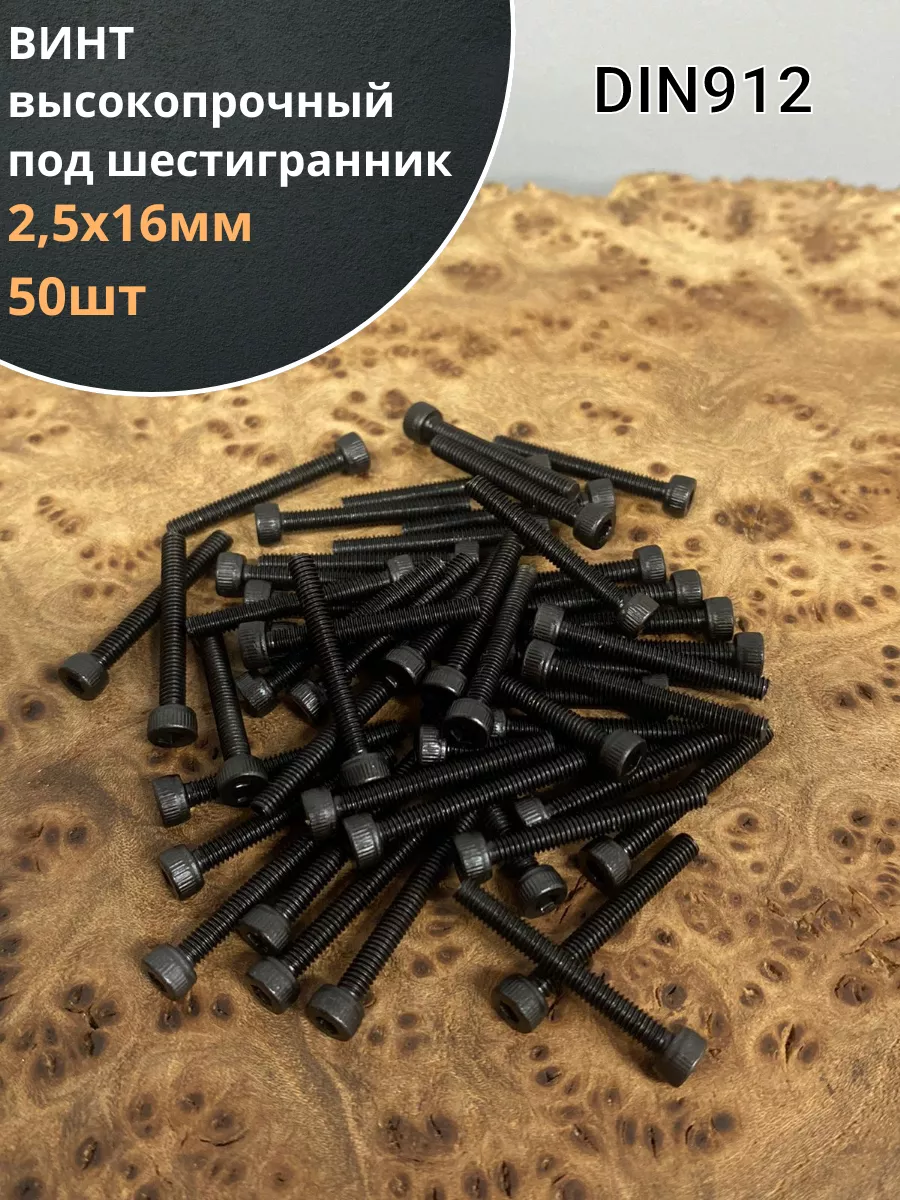 Винт высокопрочный ПР М2,5х16 мм к.п.12.9 черный DIN912, 50 шт.