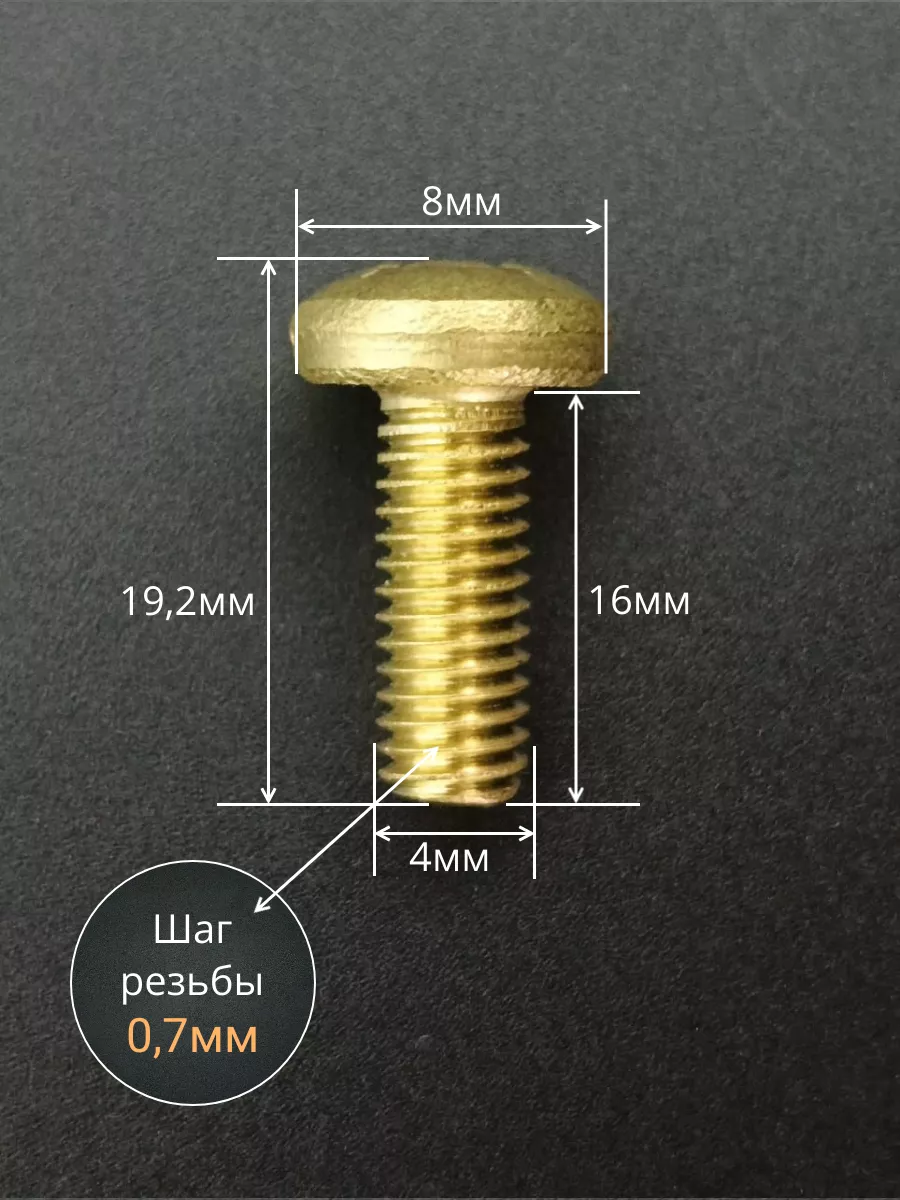 Винт 4х16 латунный с полукруглой гол. DIN7985,10 шт