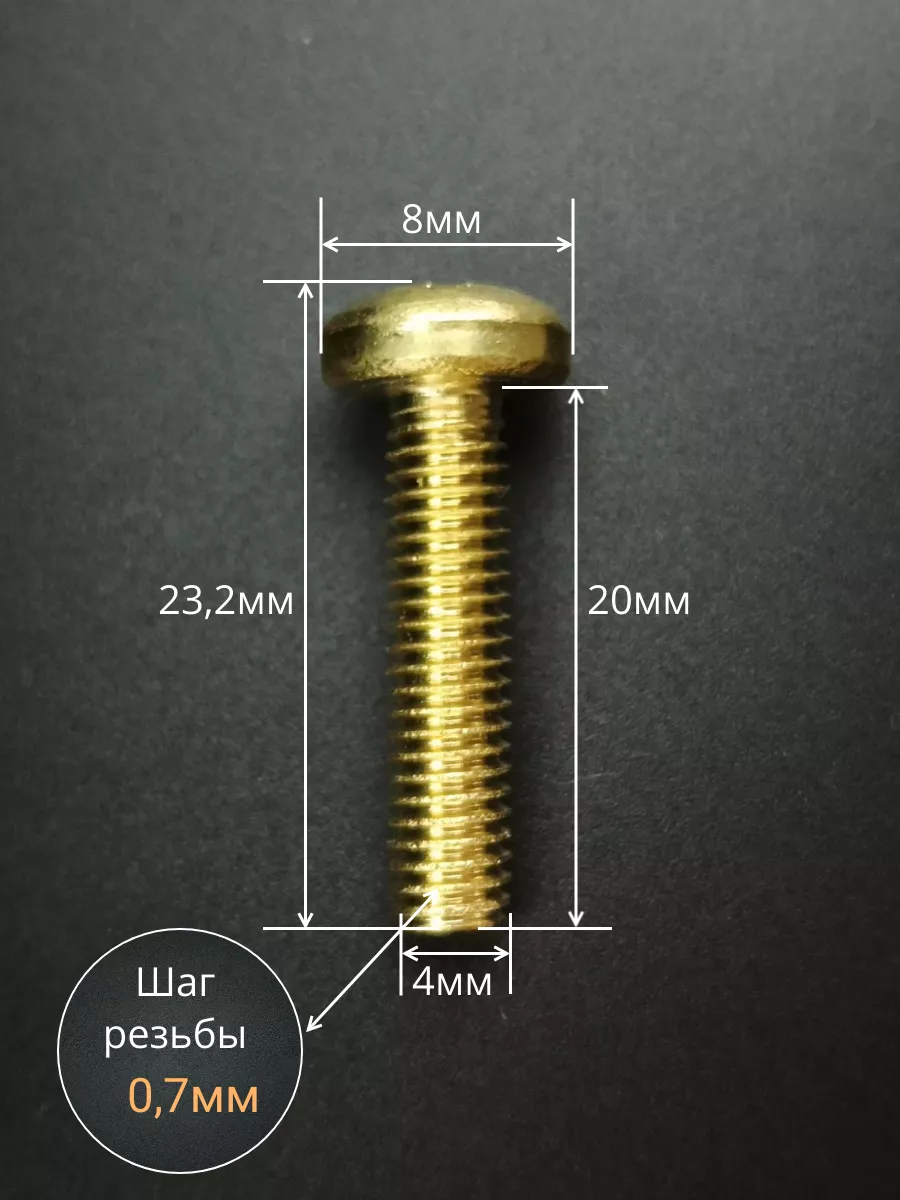 Винт 4х20 латунный с полукруглой гол. DIN7985,10 шт
