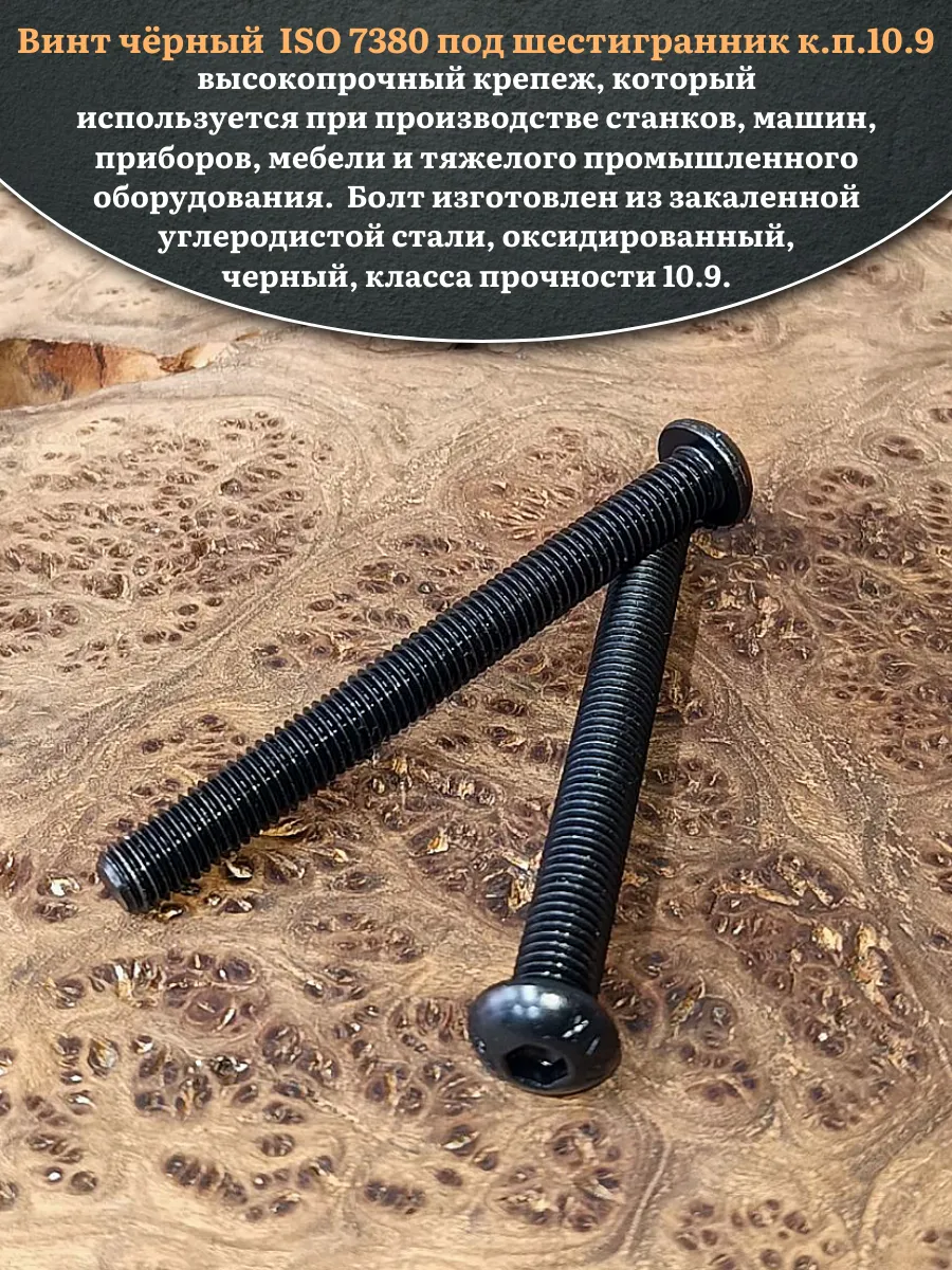 Винт чёрный М10х100 ISO 7380 под шестигранник к.п.10.9, 10 шт.