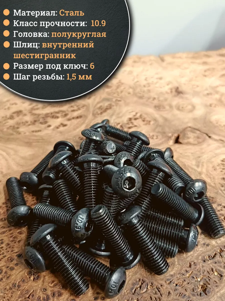 Винт чёрный М10х35 ISO 7380 под шестигранник к.п.10.9, 50 шт.