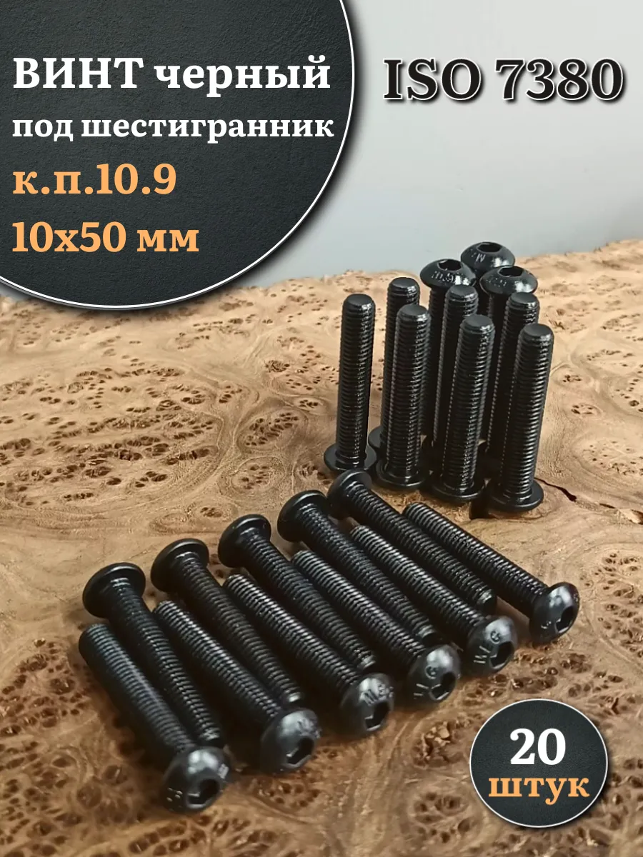 Винт чёрный М10х50 ISO 7380 под шестигранник к.п.10.9, 20 шт.
