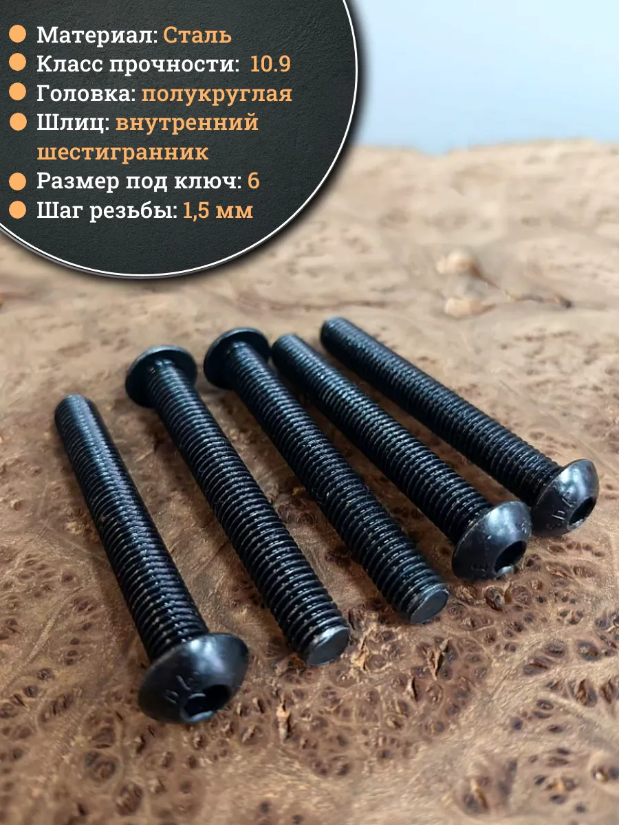 | Винт чёрный М10х75 ISO 7380 под шестигранник к.п.10.9, 20 шт. | 00-00006381ф20 | 1 шт. |