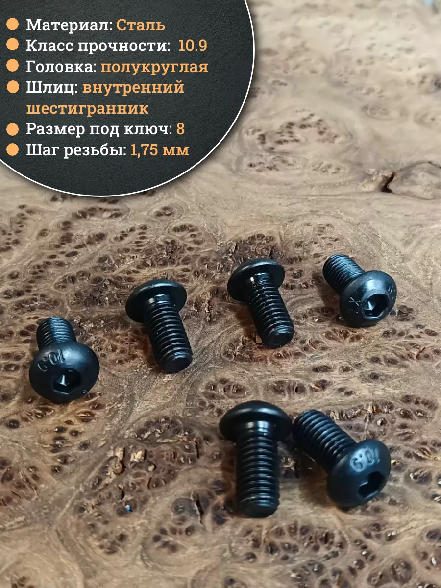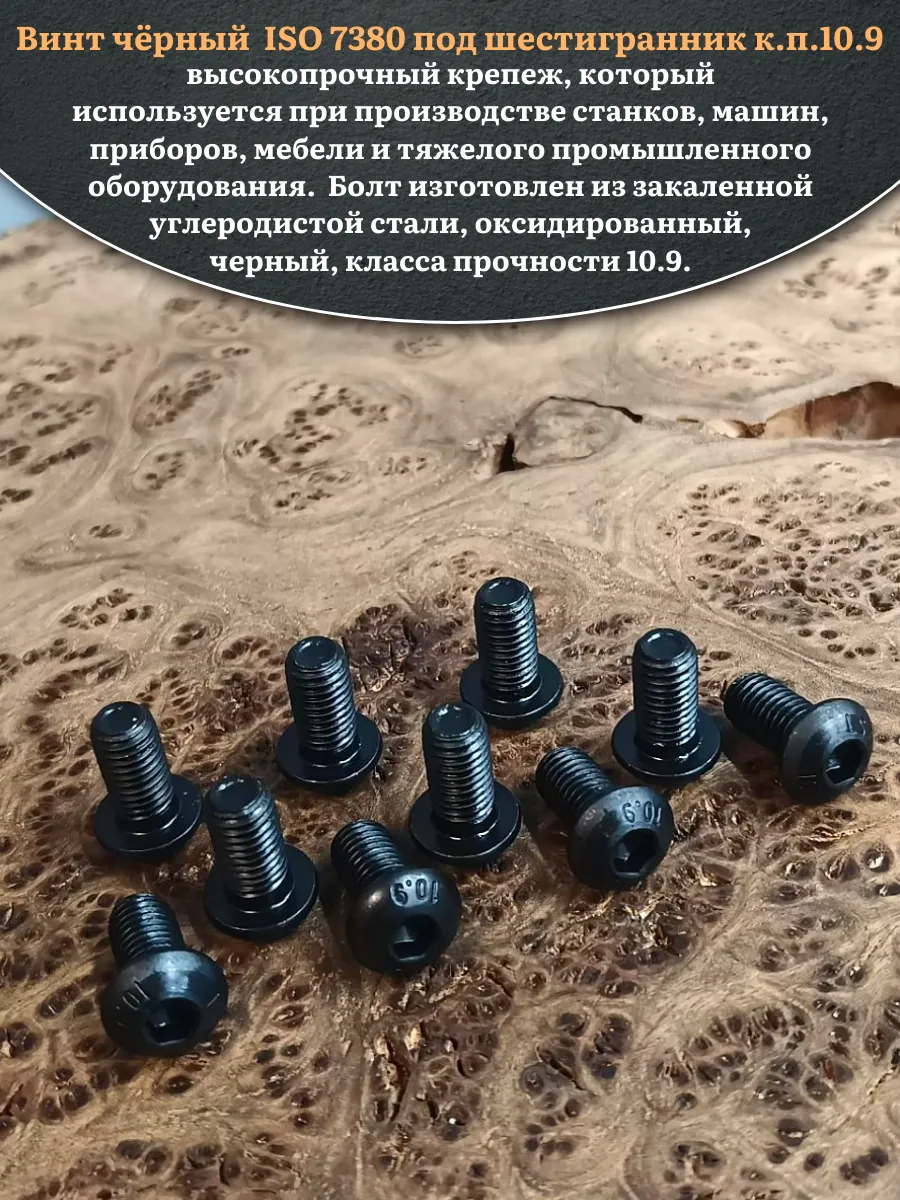 | Винт чёрный М12х20 ISO 7380 под шестигранник к.п.10.9, 10 шт. | 00-00004452ф10 | 1 шт. |
