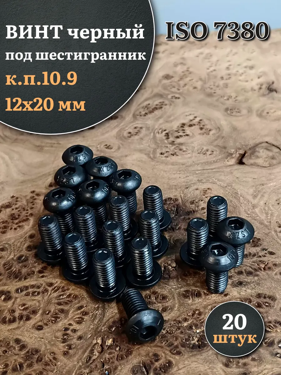 Винт чёрный М12х20 ISO 7380 под шестигранник к.п.10.9, 20 шт.