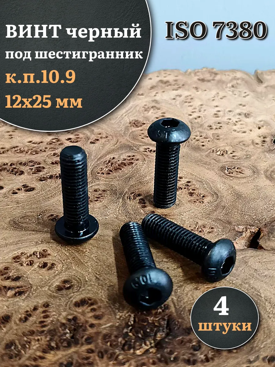 Винт чёрный М12х25 ISO 7380 под шестигранник к.п.10.9, 4 шт.