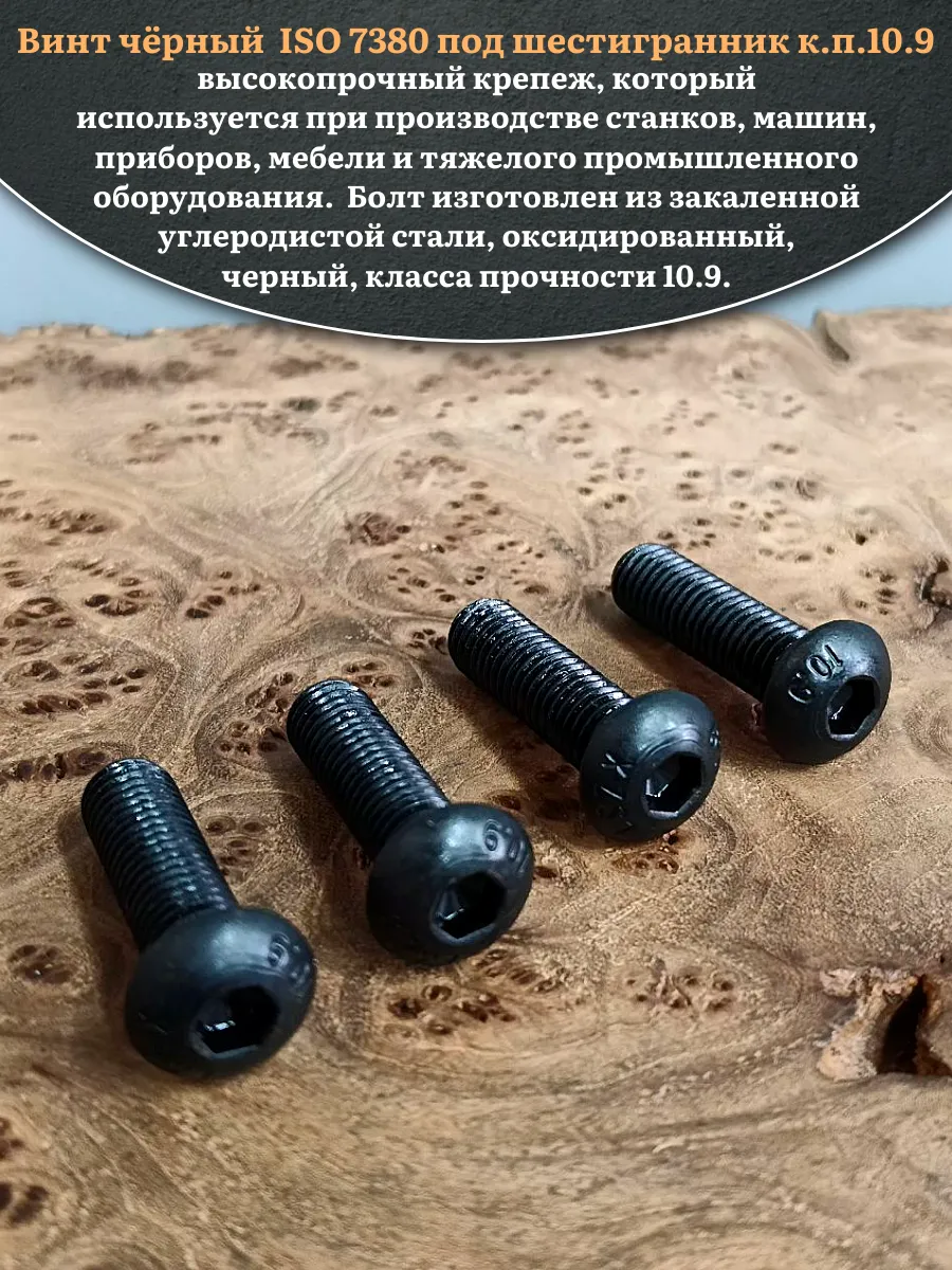 Винт чёрный М12х35 ISO 7380 под шестигранник к.п.10.9, 10 шт.