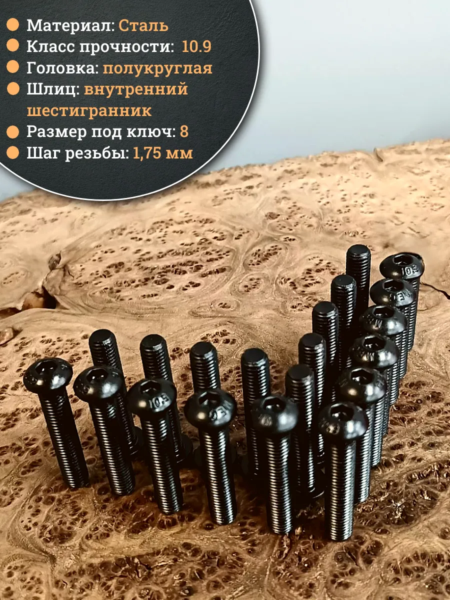 | Винт чёрный М12х50 ISO 7380 под шестигранник к.п.10.9, 10 шт. | 00-00003087ф10 | 1 шт. |