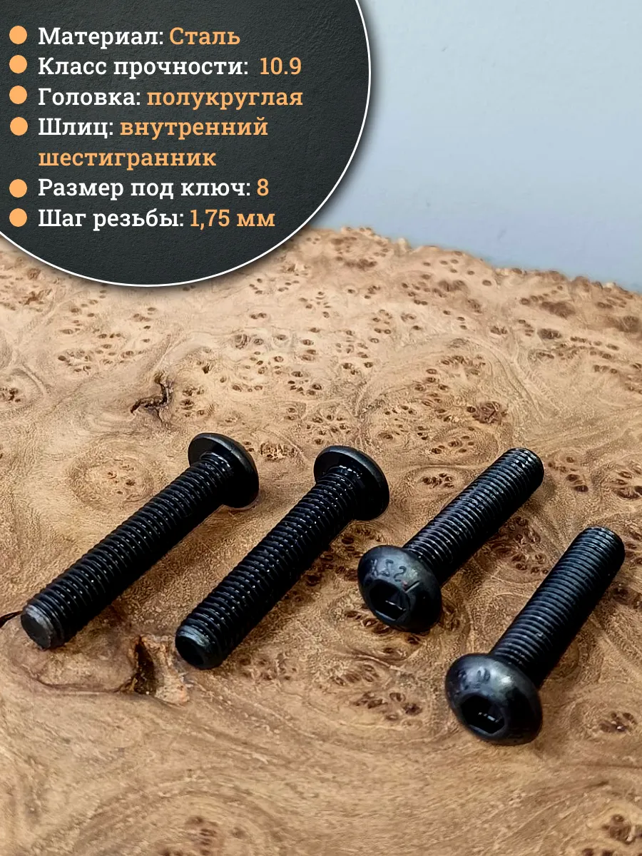 Винт чёрный М12х50 ISO 7380 под шестигранник к.п.10.9, 4 шт.