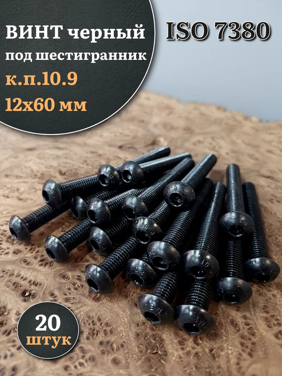 Винт чёрный М12х60 ISO 7380 под шестигранник к.п.10.9, 20 шт.