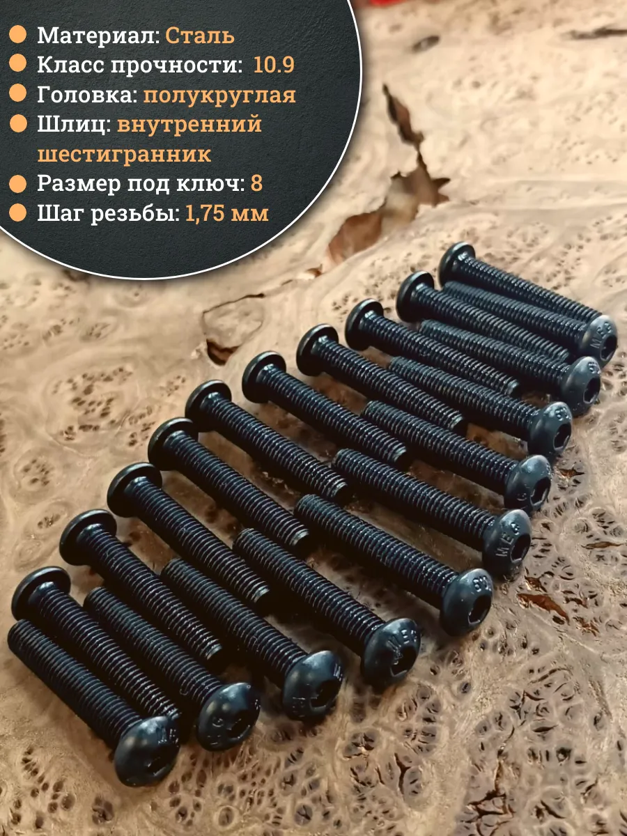 | Винт чёрный М12х60 ISO 7380 под шестигранник к.п.10.9, 10 шт. | 00-00003734ф10 | 1 шт. |