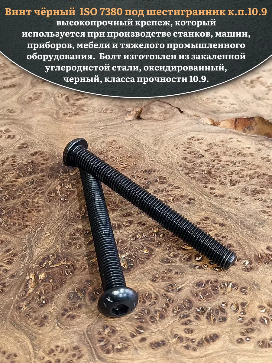 Винт чёрный М12х80 ISO 7380 под шестигранник к.п.10.9, 10 шт.