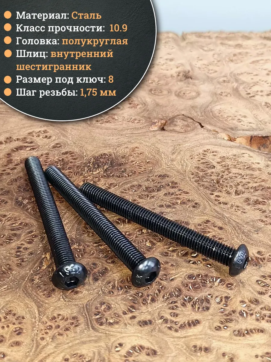| Винт чёрный М12х80 ISO 7380 под шестигранник к.п.10.9, 20 шт. | 00-00004453ф20 | 1 шт. |