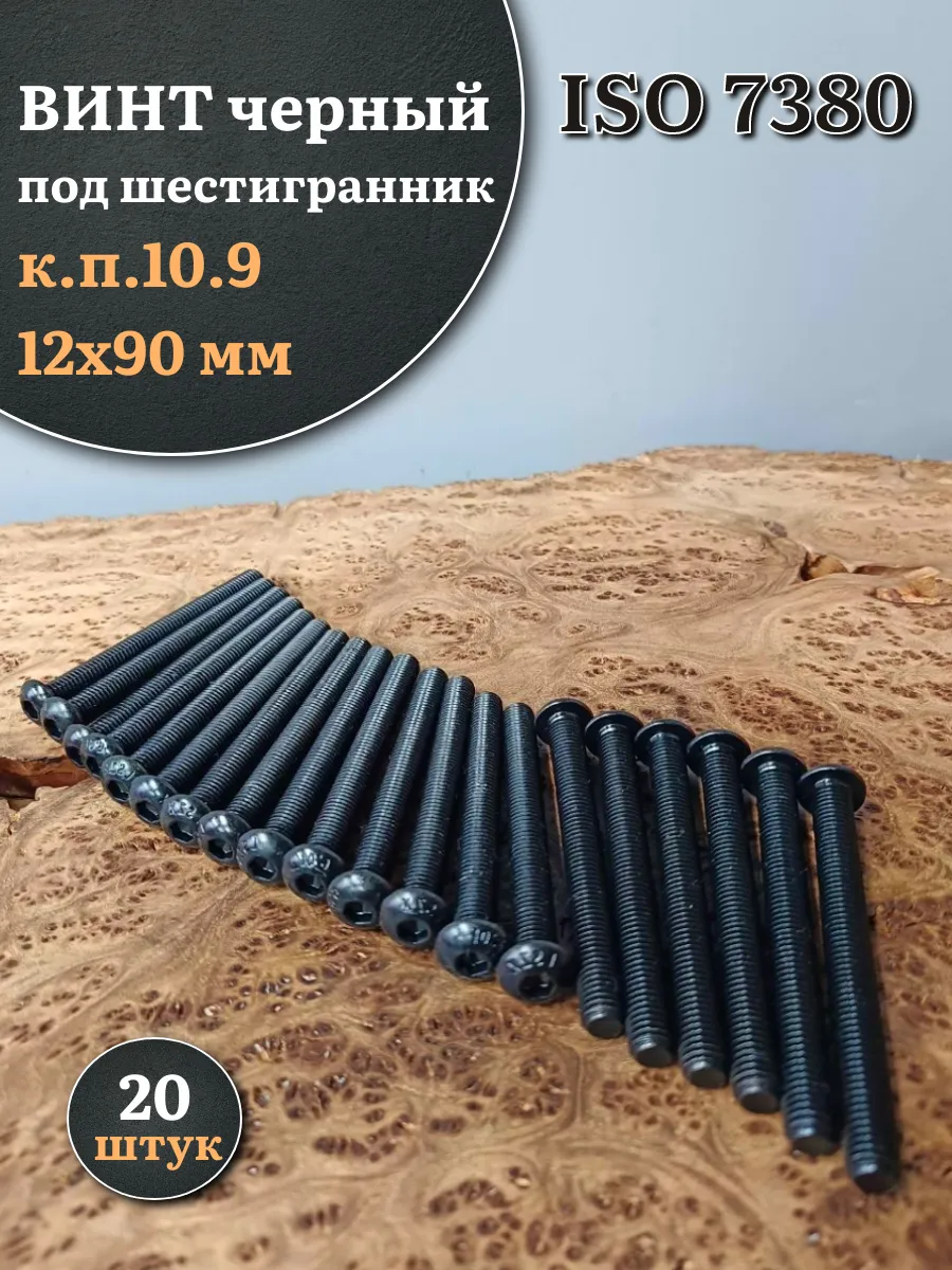 Винт чёрный М12х90 ISO 7380 под шестигранник к.п.10.9, 20 шт.