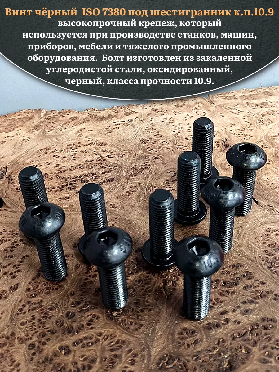 Винт чёрный М16х35 ISO 7380 под шестигранник к.п.10.9, 10 шт.
