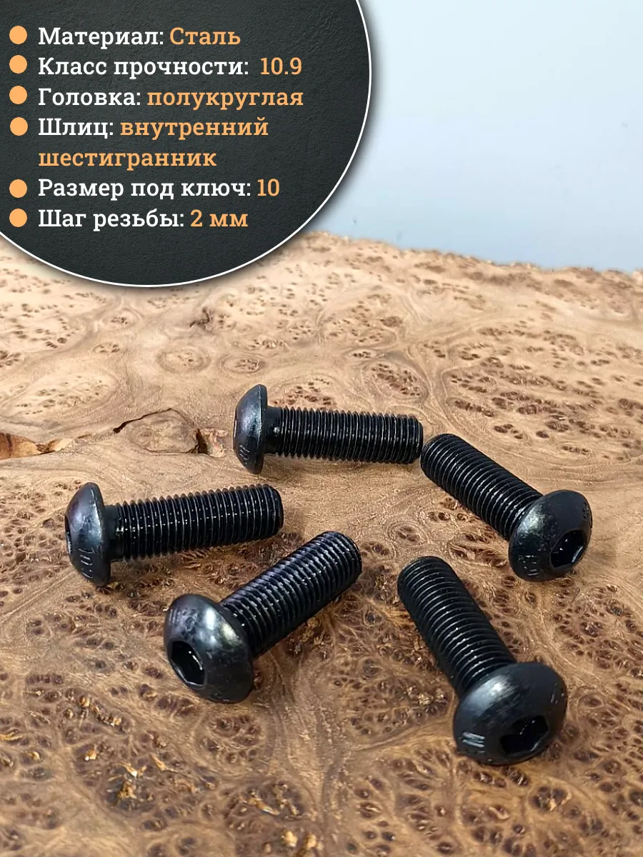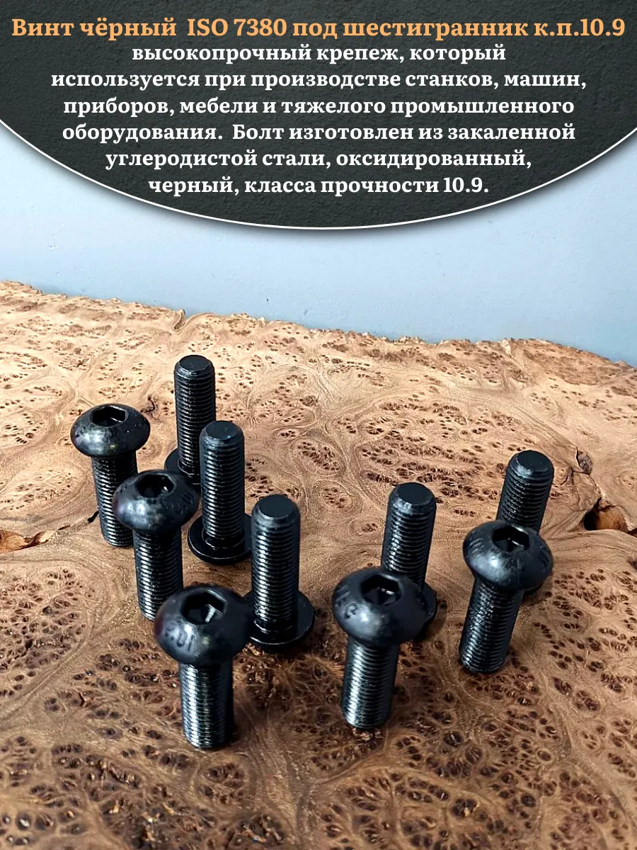 Винт чёрный М16х40 ISO 7380 под шестигранник к.п.10.9, 10 шт.