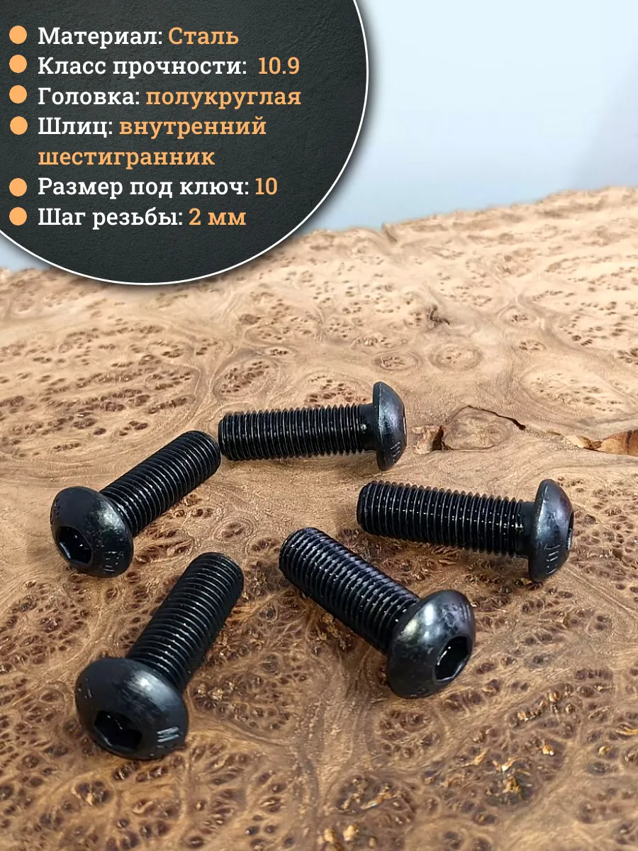 Винт чёрный М16х50 ISO 7380 под шестигранник к.п.10.9, 10 шт.