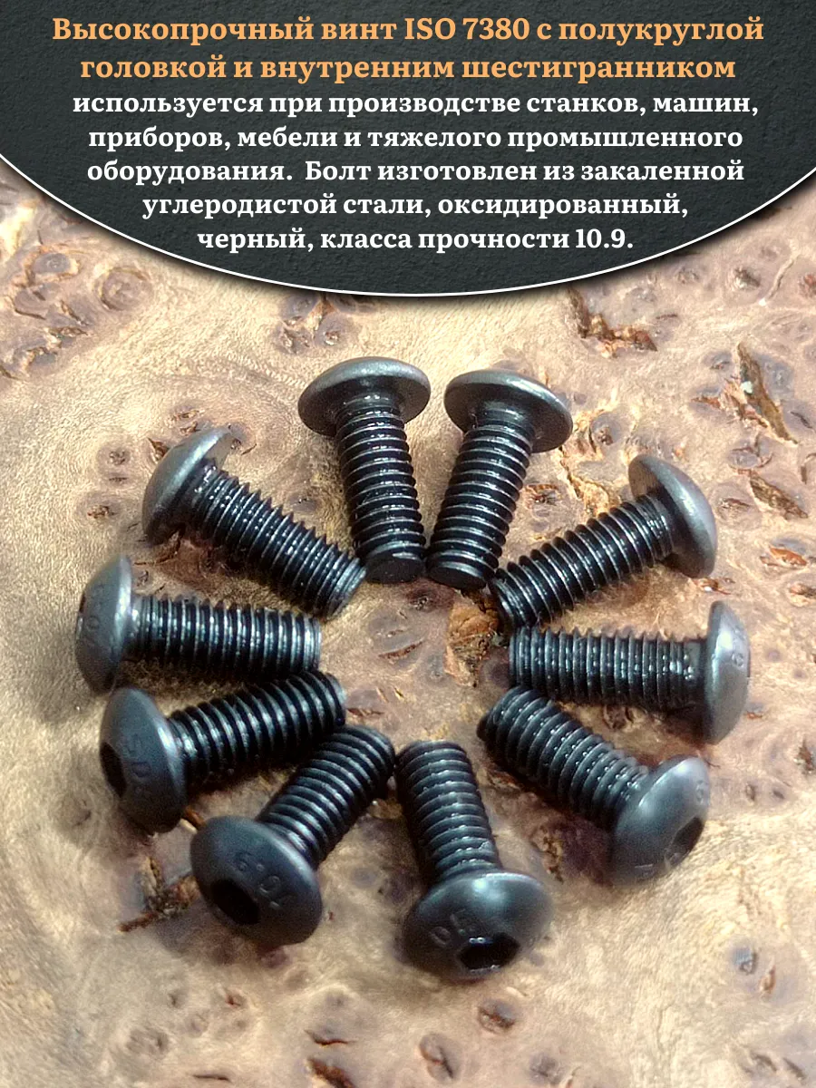 Винт чёрный М3х10 ISO 7380 под шестигранник к.п.10.9, 10 шт.