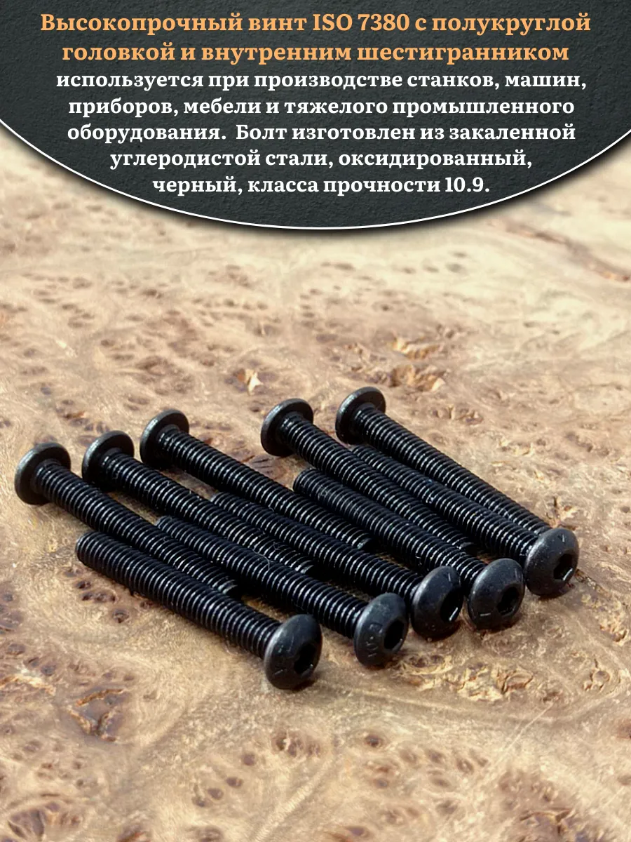Винт чёрный М3х25 ISO 7380 под шестигранник к.п.10.9, 10 шт.
