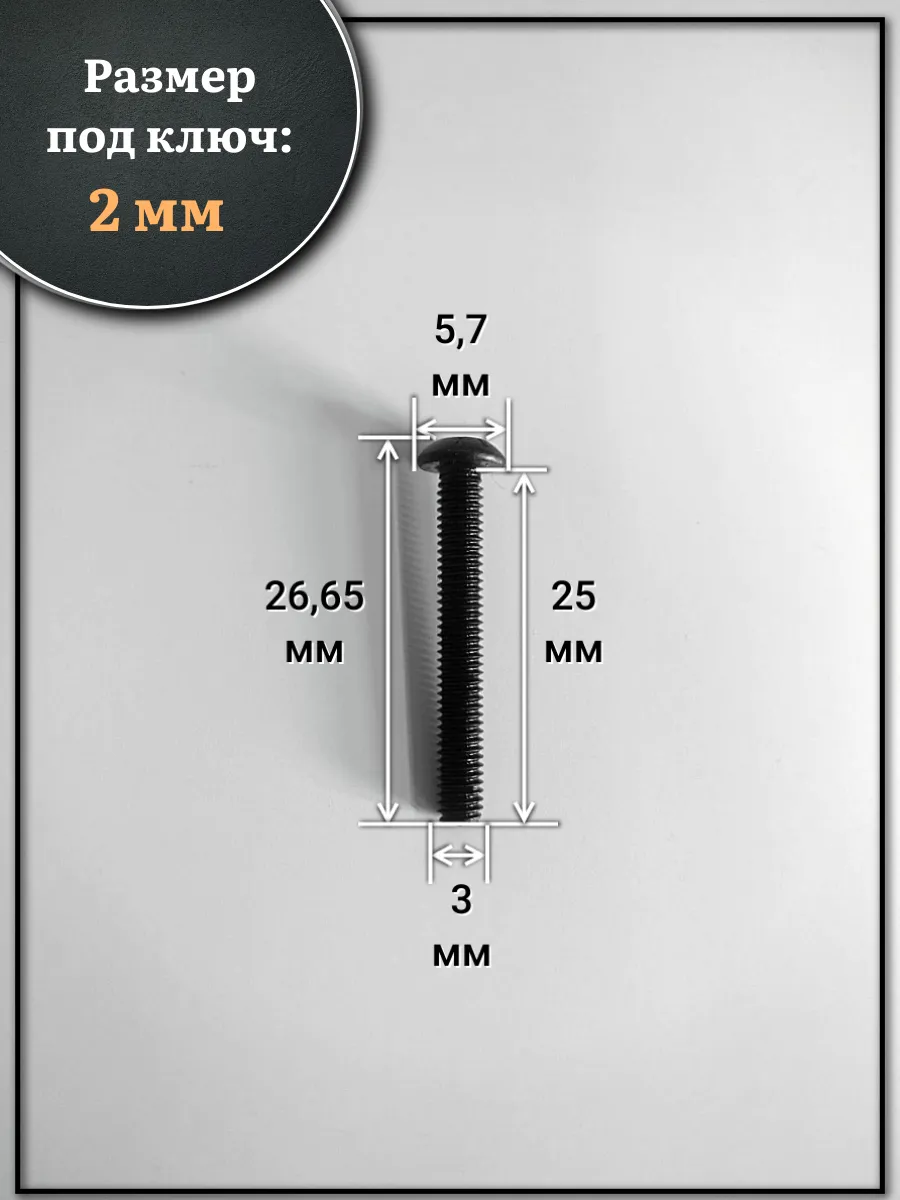 | Винт чёрный М3х25 ISO 7380 под шестигранник к.п.10.9, 10 шт. | 00-00000603ф10 | 1 шт. |