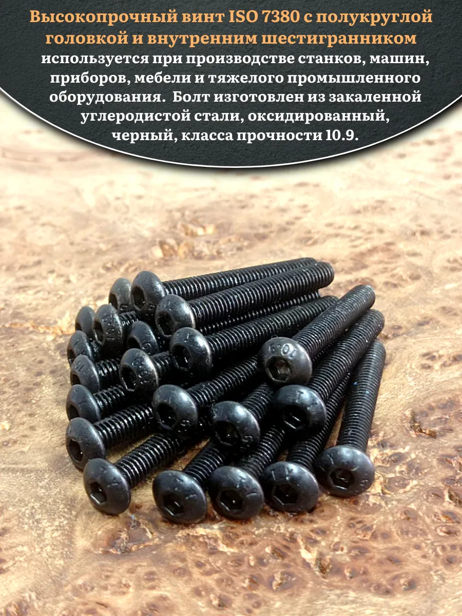 Винт чёрный М3х30 ISO 7380 под шестигранник к.п.10.9, 20 шт.