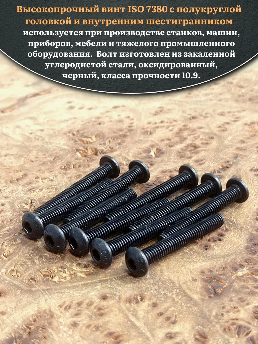 Винт чёрный М3х30 ISO 7380 под шестигранник к.п.10.9, 50 шт.