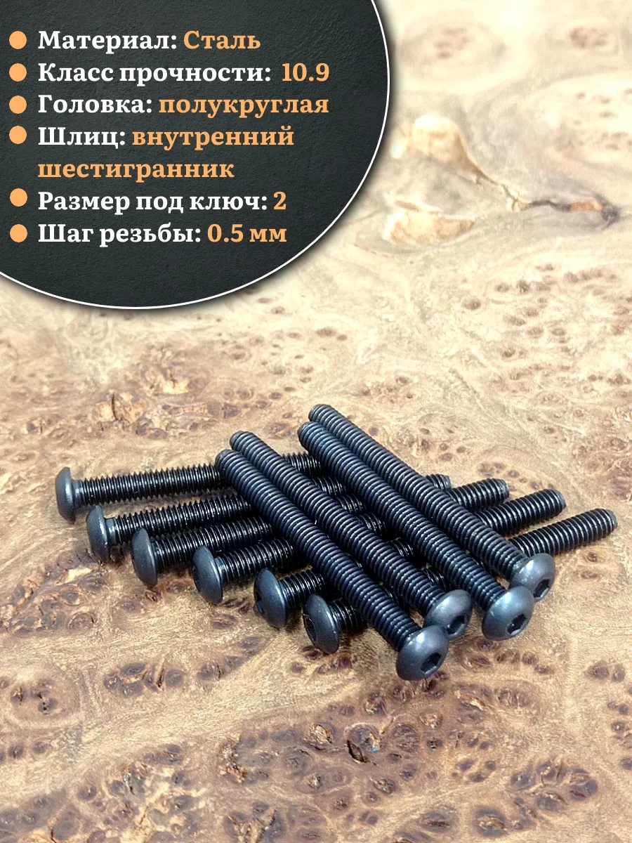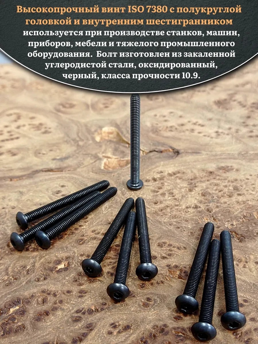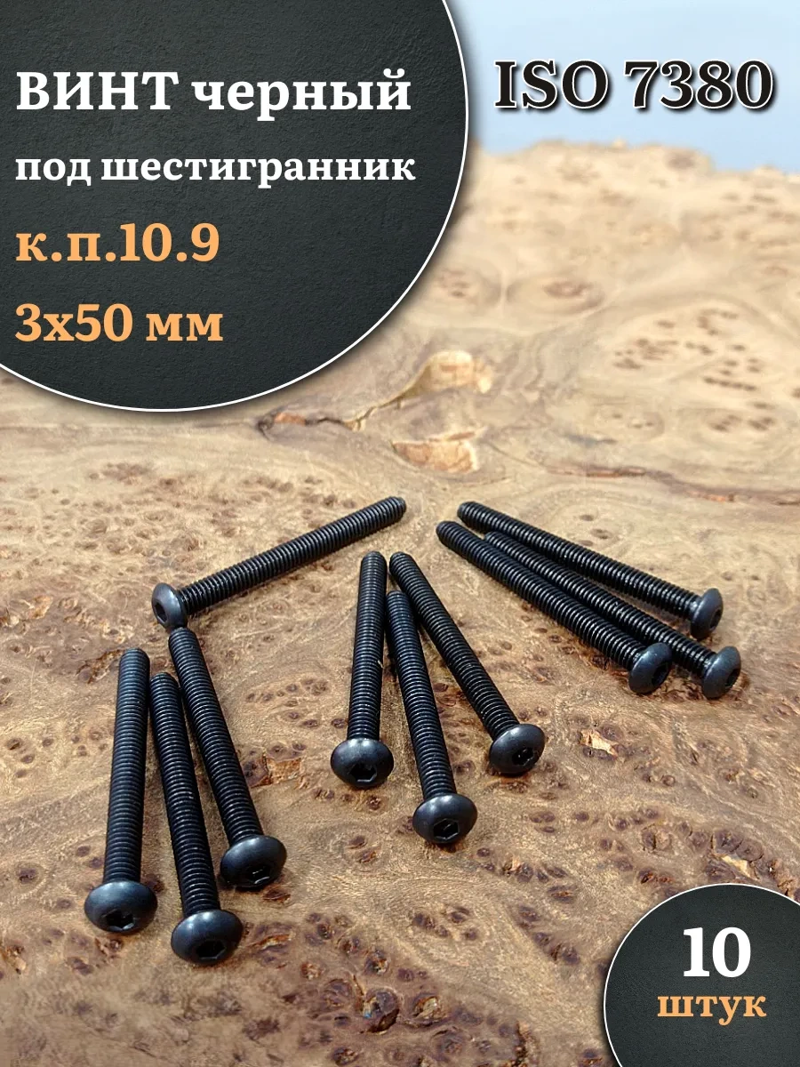 Винт чёрный М3х50 ISO 7380 под шестигранник к.п.10.9, 10 шт.
