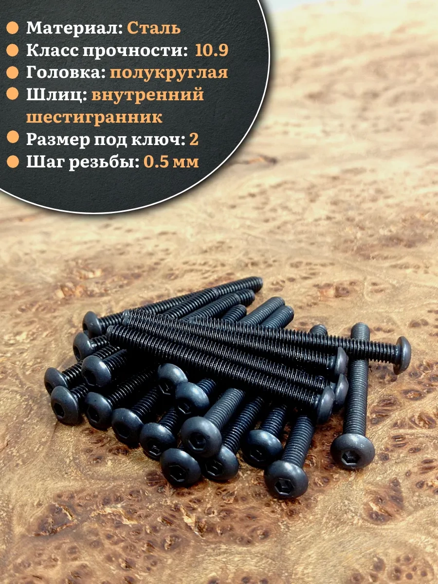 | Винт чёрный М3х50 ISO 7380 под шестигранник к.п.10.9, 20 шт. | 00-00006376ф20 | 1 шт. |