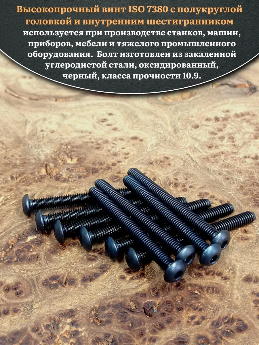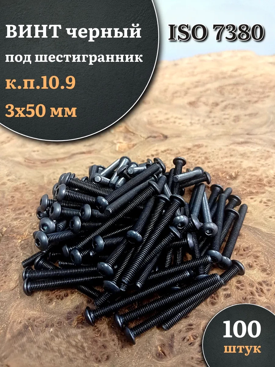 Винт чёрный М3х50 ISO 7380 под шестигранник к.п.10.9, 100 шт.