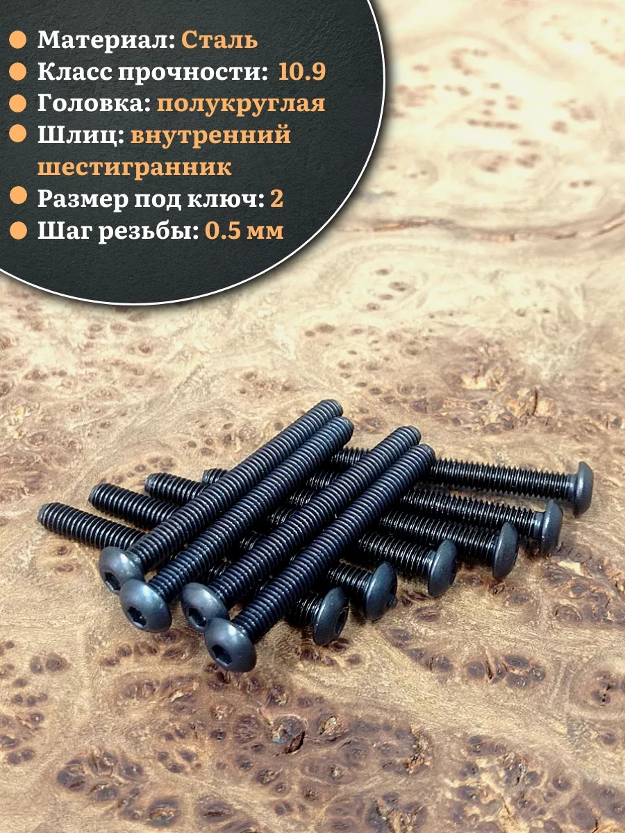 | Винт чёрный М3х50 ISO 7380 под шестигранник к.п.10.9, 10 шт. | 00-00006376ф10 | 1 шт. |