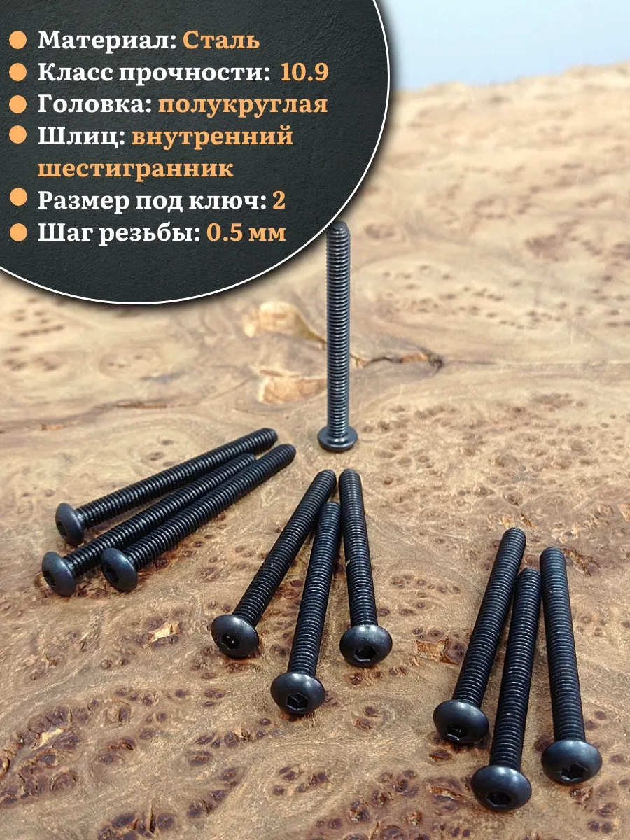 Винт чёрный М3х50 ISO 7380 под шестигранник к.п.10.9, 50 шт.