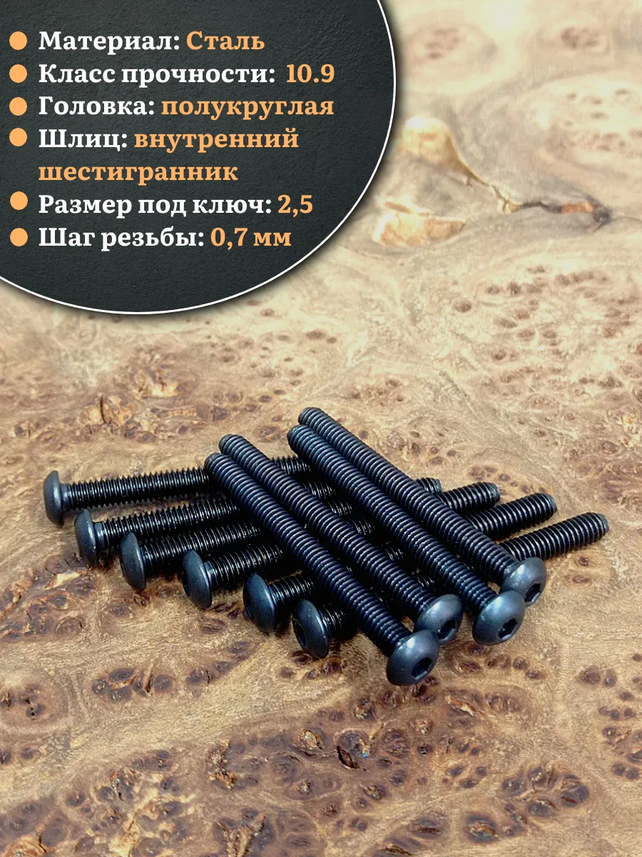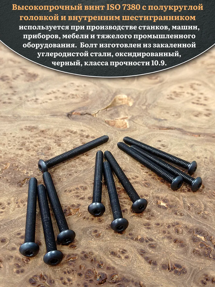 Винт чёрный М4х40 ISO 7380 под шестигранник к.п.10.9, 10 шт.